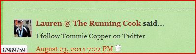 Hope you like 'em, Lauren. I won some from Marcia at The Studly Runner and they're great.And Christy, glad you sent your photo to Cory.