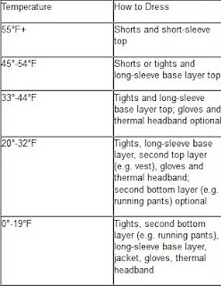 ReplyDeleteLove this post! I'm in KY where the weather is much more mild anyway, but i just hate a treadmill and really, really wanna keep my run outside this winter. That How to Dress chart looks really handy! runner_girl5k at yahoo dot com