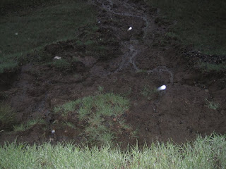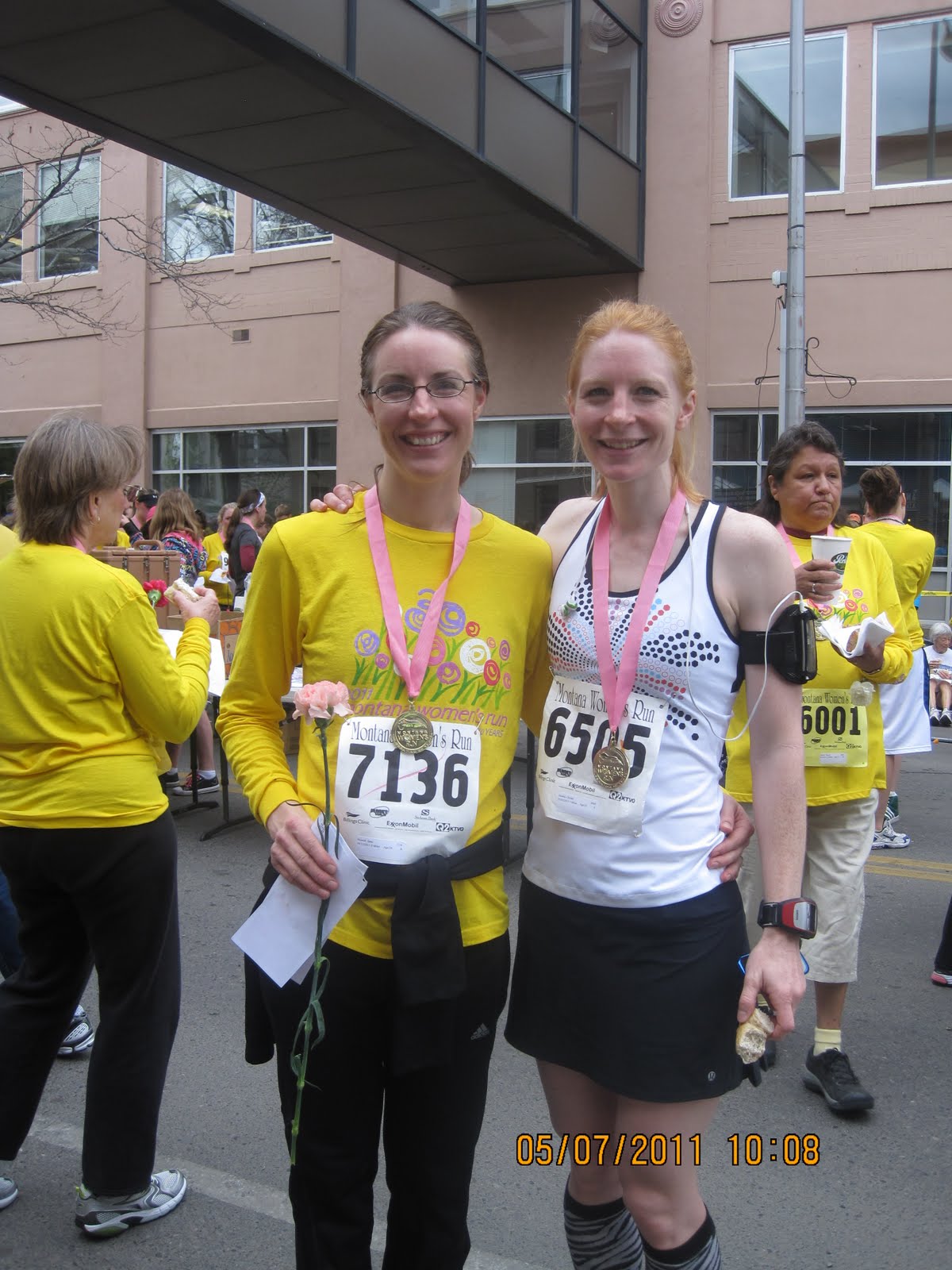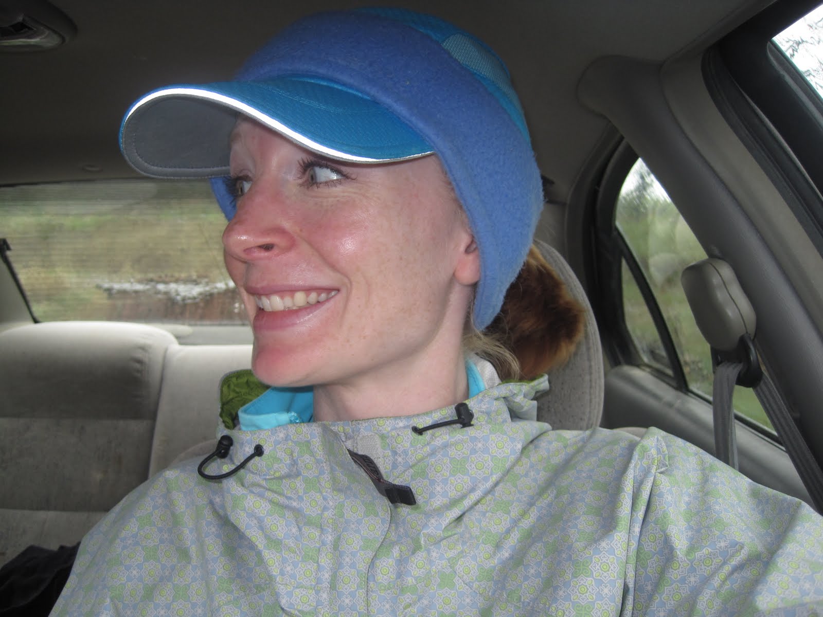 Finally ten minutes before start time we got out and ventured up to the start line, so not really a trail run as it was on a paved bike path, I didn't wear my racing flats since I thought it was a trail run. This threw me a little mentally, especially when I saw others in their flats. The gun finally went off and the rain also let up a little, which was a bummer since I was in full rain gear. I route was full of hills and by the 1 mile mark I was pooped! I finally felt back on track around two miles and managed to win first female by nearly 2 minutes. My time was 23.13 which is slow for me, but considering the hill and full rain suit, and shoes, I was happy. I knew I wouldn't PR at this one.