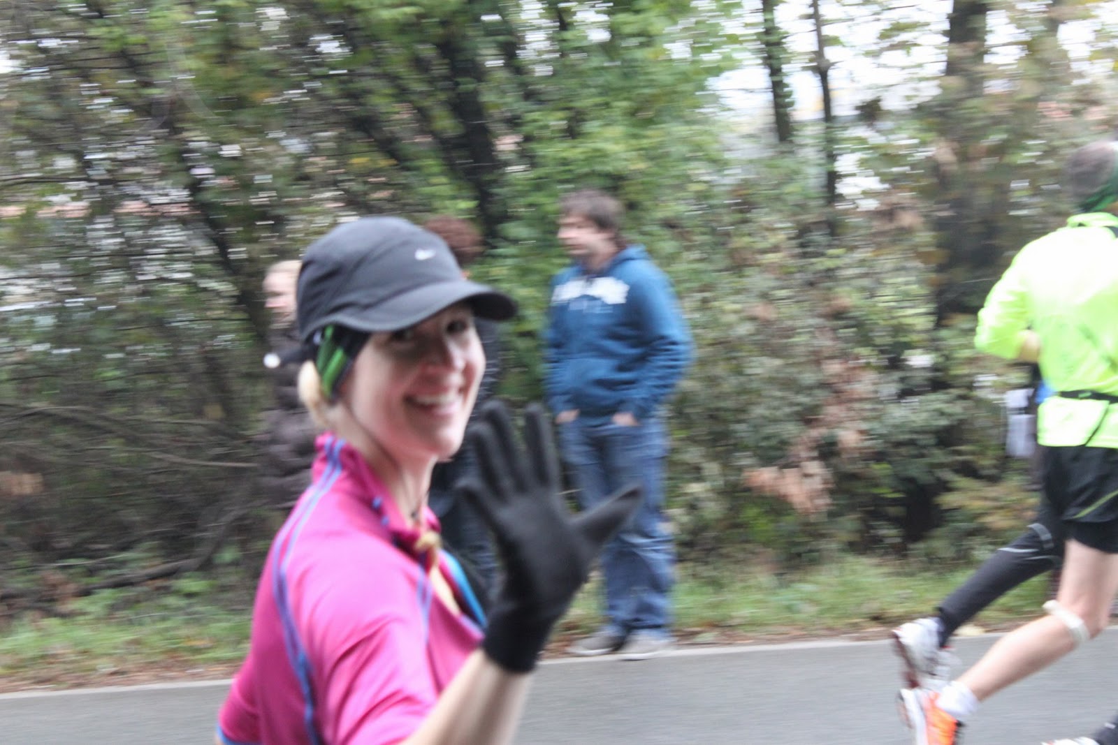 My first 1/2 was in April in Vienna, Austria. Sadly I missed my goal time (under 2 hours) by 16 seconds, ugh, who does that?? 16 seconds! I was pretty sure I'd be able to reach that goal this time and had a secret goal of closer to the 1:50 range as in 1:53'ish. Realistically I figured my miles would average about 8:30 to 8:45 minutes/mile. I'm pretty sure the few days before the race my heart was speeding, I was a bit light headed and I obsessively checked the weather forecast. 4 days before the race was raining/snowing- ugh! What to wear when it's cold and rainy? I ended up following the guide Christy had posted earlier but I didn't have a vest so I wore an tight tank top under my top for added core warmth.