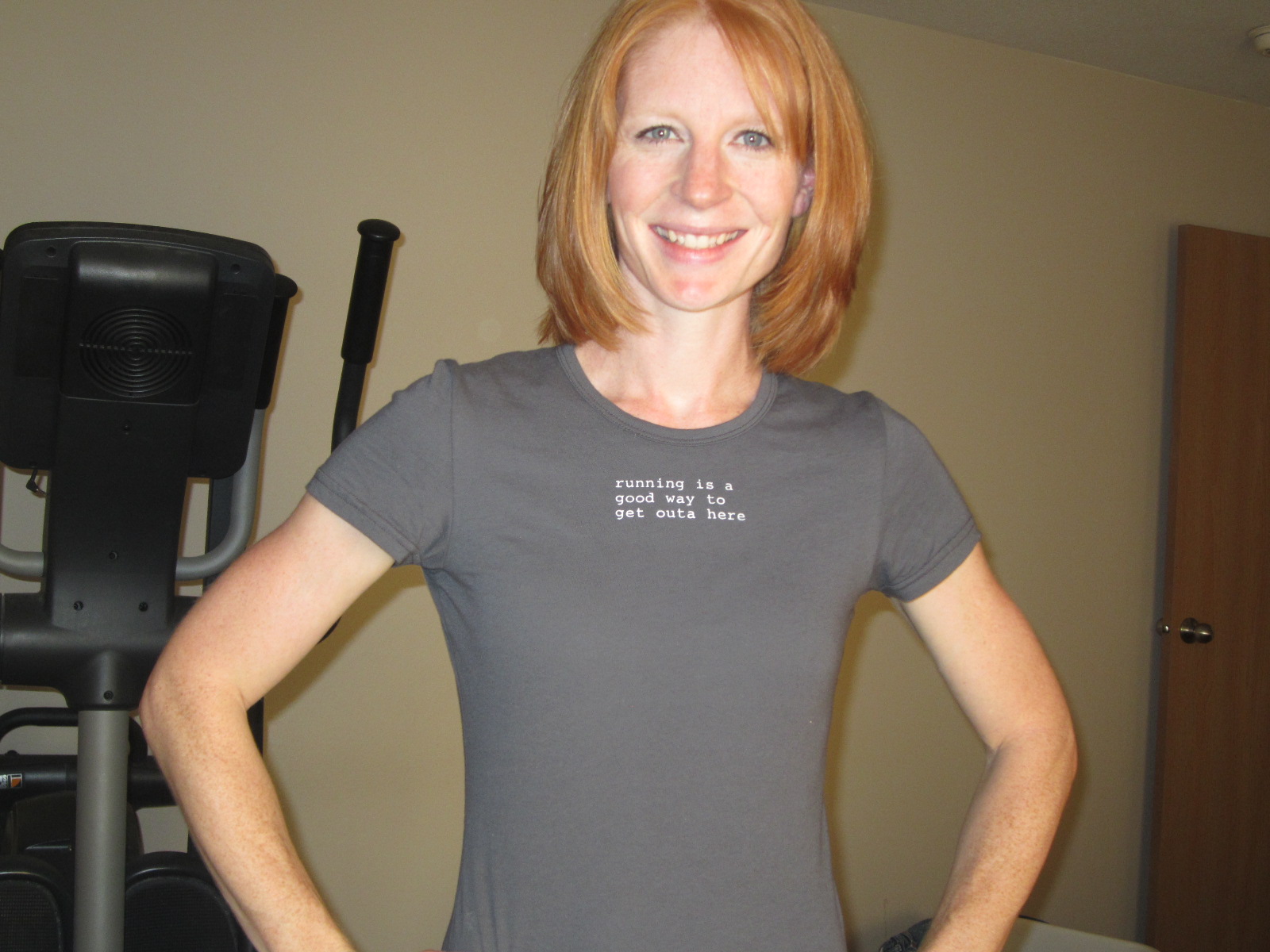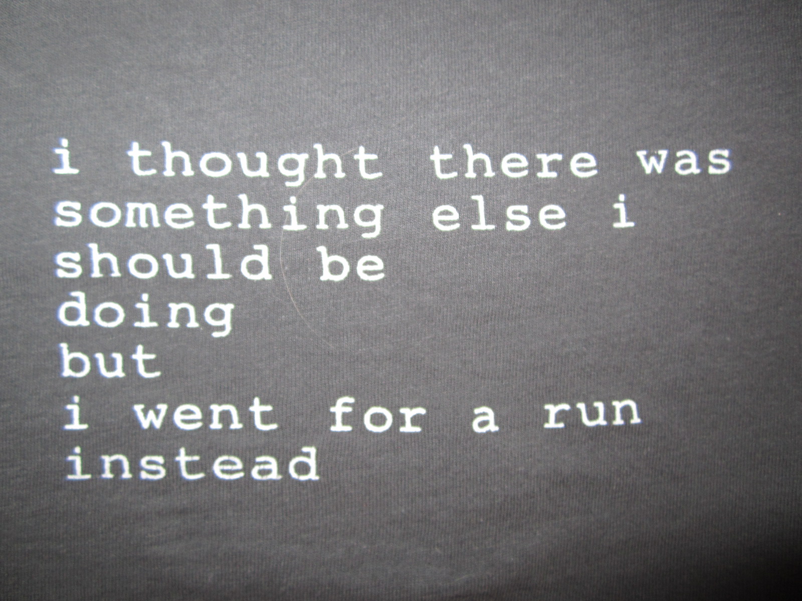 I also got this t-shirt. Front says "running is a good way to get outta here"