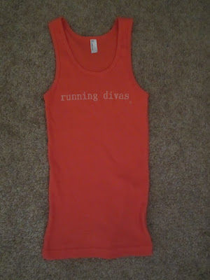 Here is what you could win! A bright orange, this picture does not do it justice, tank. Says "running divas" on the front. The tank is ribbed, long and stretchy. Super cute! I really liked this shirt, but wanted to share the love with you guys.