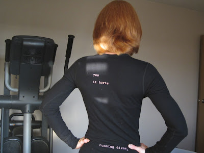 the back says "yes it hurts" and "running divas" along the bottom.