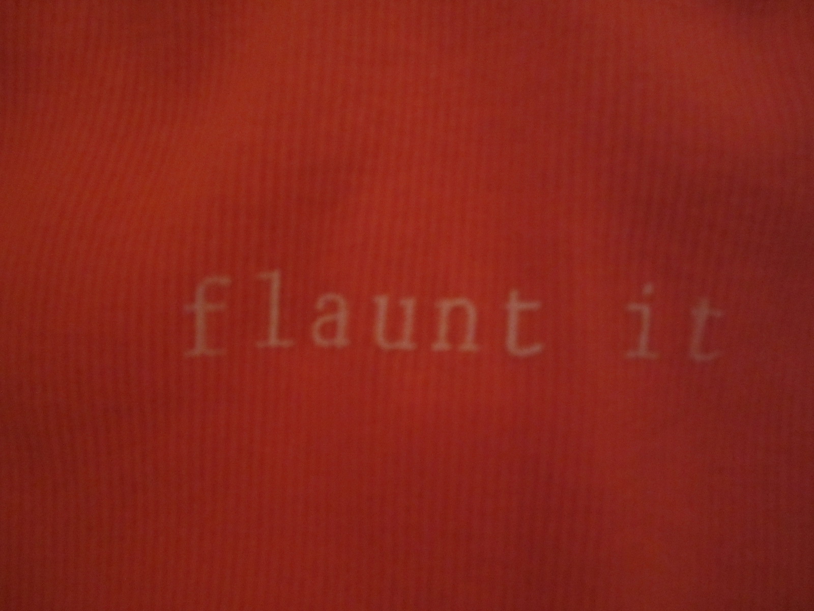 The skirt says running divas and "flaunt it" in pink. It doesn't show up well in the pictures.