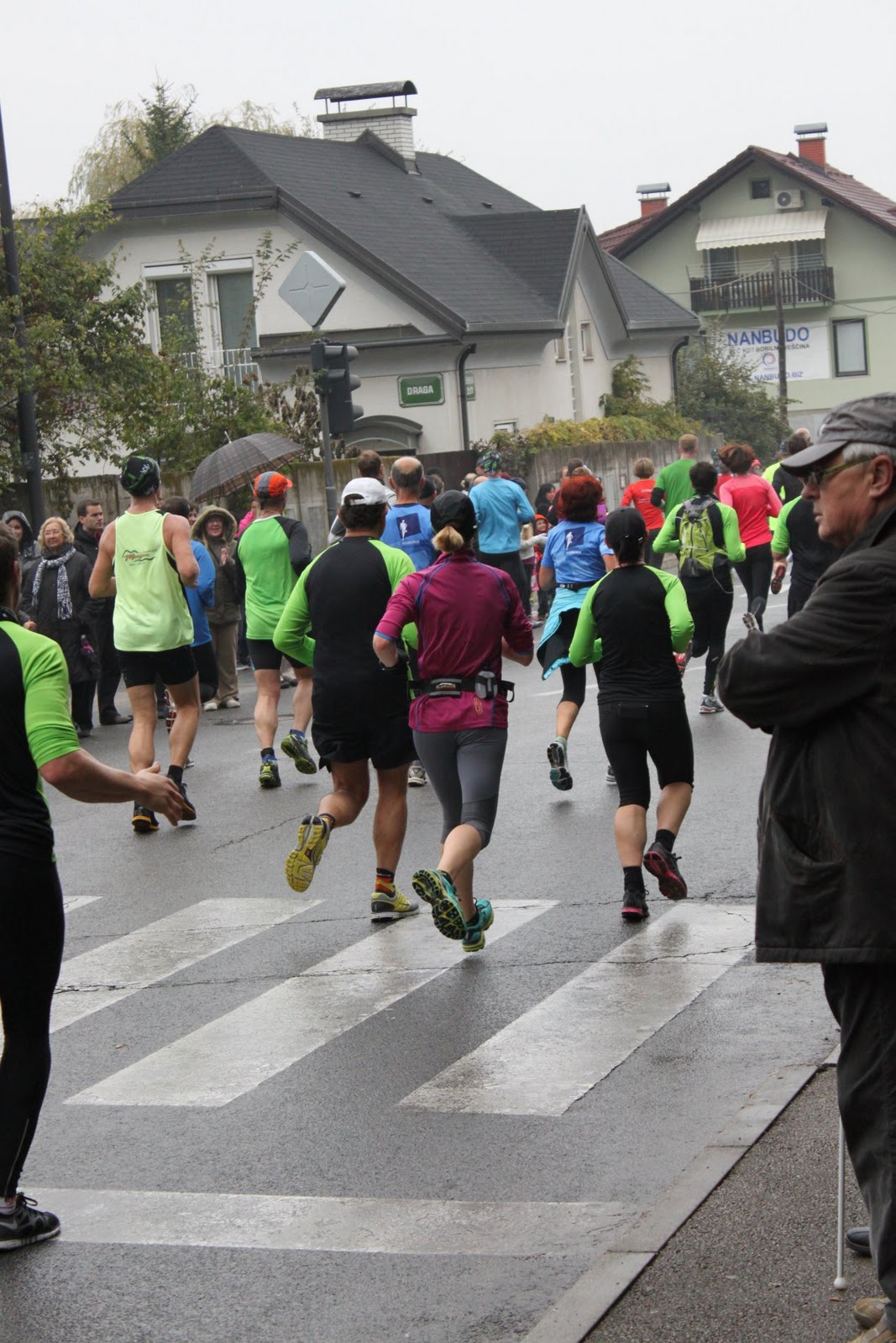 I was thankful that for this race it was in the town in which I live, Ljubljana, Slovenia. I know some, maybe most, of you are thinking "el, jub el ja.. what??" It's pronounced loo- blee-ya-na. It a beautiful country, if you've never heard about it you can check it out HERE . Anyhow Sunday morning was game time! It was a cool 45'ish, overcast with a slight misting a rain. It was perfect for running, not so perfect for standing but perfect for running. Before I left for the race my son reminded me over and over again to NOT forget it was a race and to make sure I turned on my super speed. I think I got the message! I did not take my sister's advice of starting slightly slow with 8:45 to 9 minute miles. Oops, it just felt like I was running so darn slow but when I looked down at my garmin I was shocked to see my pace at 8 min/mile. How the heck? I figured I would not be able to keep that up as I NEVER run 8 min/miles. I tried to slow it down a bit but failed... I just felt so darn good.
