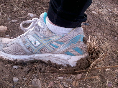 I had a pretty good if not slow run yesterday. 8.4 miles with some mud. I had about 1.5 miles of running on a field road that was a little muddy, but not horribly so. It did get heavy on my shoes though. I did slip slide around pretty good a couple times.