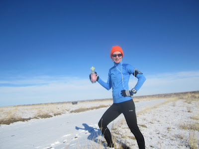 Just another pretty view, if you love sage brush and wide open spaces and I do! The sky was really pretty today. A storm was working on rolling in and sure enough it started snowing later in the day so I was glad I got my run done in the morning.