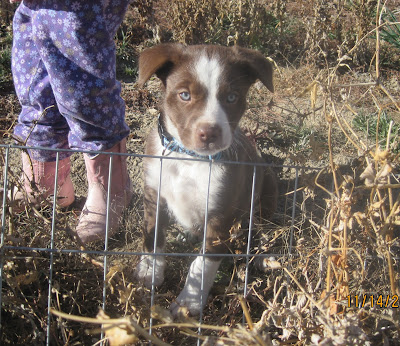 The 5 H's stand for herding, heeling, heeding, hardiness, and heading. Most of you are probably thinking WHAT? If you want an explanation you can check it out HERE 5H stock dogs are roughly 50% Border Collie for the heeding, herding, and heeling traits; 25% Blue Heeler for heeling and hardiness traits; and 6% Bull Terrier for the hard-to-find heading trait as well as to add genes for a short, slick coat. The rest depends on the strengths of the particular strains of dogs used. They are hard workers and can pretty much run all day. They originated in Austrailia and my Aunt Linda and her husband started breeding them sometime in the early 1990's.