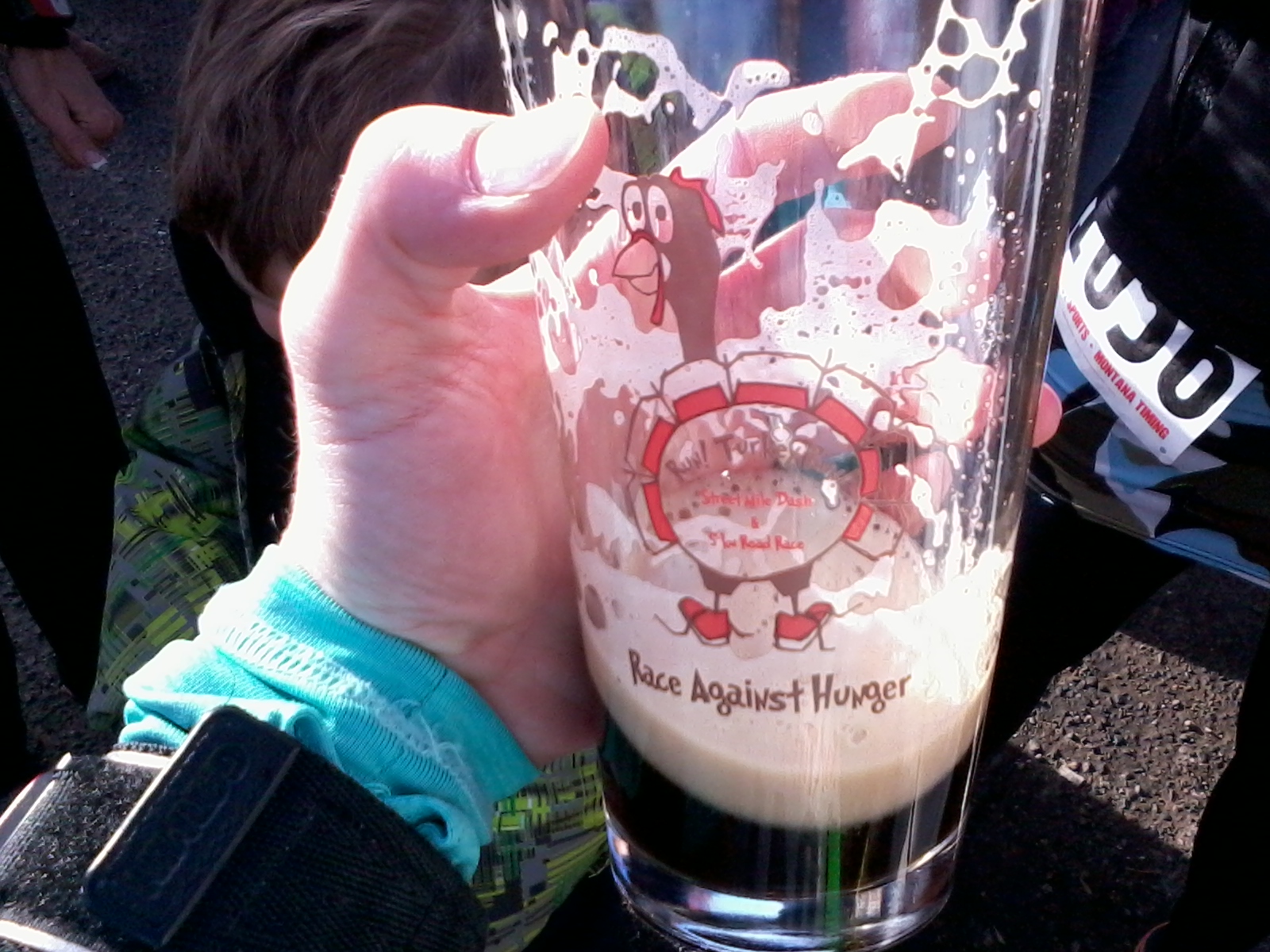 and we got finisher pint glasses, since I did both races I got two. I had a glass of porter house ale when I got done. It was pretty good!