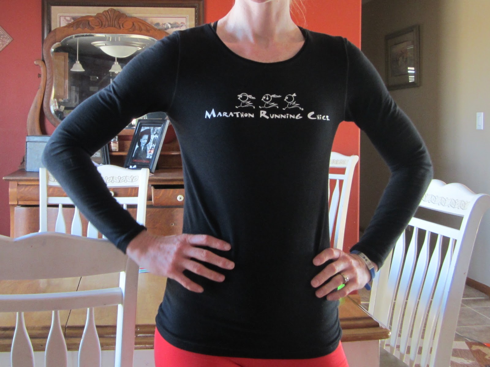 1. Way back in June I won a giveaway from Holly at the Pioneer Apron for a long sleeve stretch flex bamboo shirt from Running Chics. I got the black one with the Marathon chics on it, since by the time I would get it in the mail I would have run my first marathon by then.