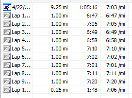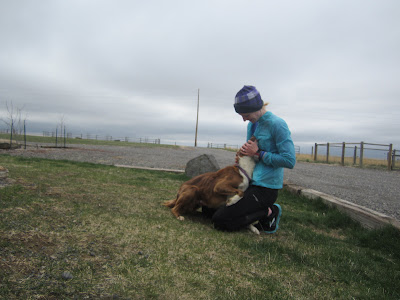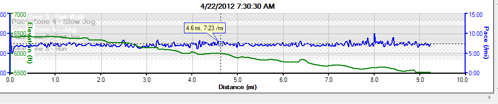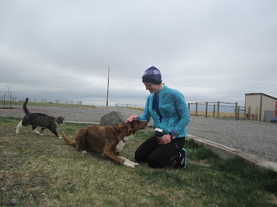 At mile 10, I passed my mail box and left my hydration belt in it while I ran with the (I need to come up with a word for it so I'm going to call it the hooker) hooker in my hand for about a mile. It fits into a running hand beautifully. It is well balanced and the hook part makes it sit easily in your hand without having to clench it tightly. You can keep your hand pretty relaxed I really hate things in my hand while I run, but for a short run this isn't too bad. Then I hooked it into the waist of my running skirt in the back.