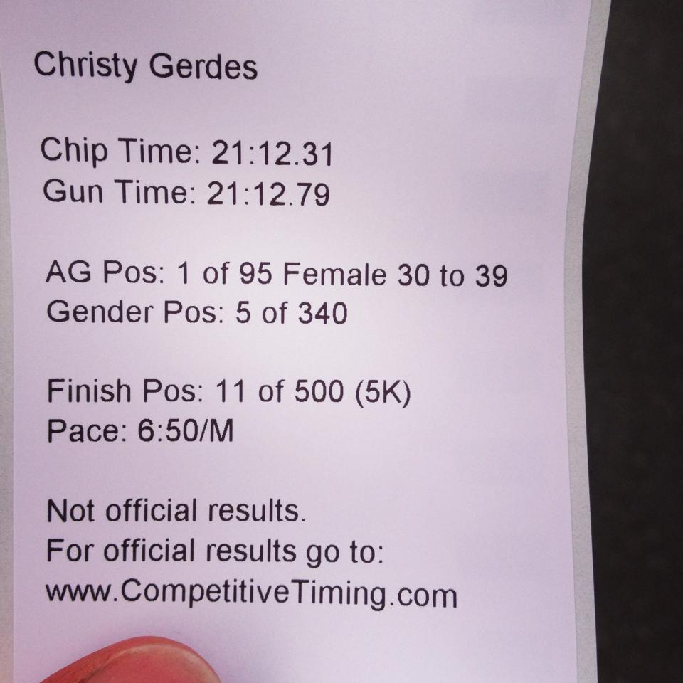 26. Congratulations on a speedy race Christy! It looks like you will have a new 5K PR before this year is over.