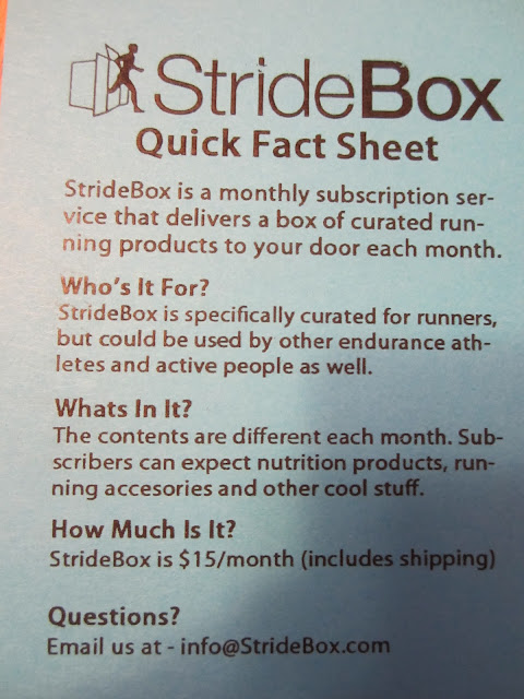 I was given the opportunity to review a StrideBox recently, and jumped at the chance. StrideBox, like Bulubox is a monthly subscription box, but StrideBox is geared for RUNNERS! YAY.