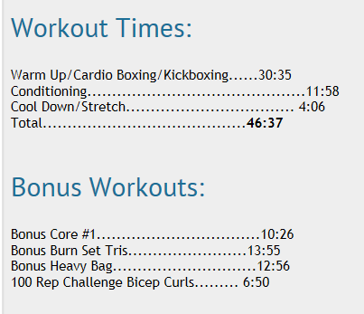 - I didn't feel like the 30 minutes of warmup/Cardio Boxing/Kickboxing gave me a workout at all. I wasn't breathing any harder than I would if I had gone for a 30 minute walk.