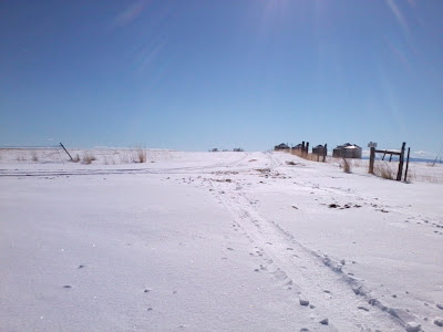 I was a little worried about the MUD yesterday on the roads, especially since I had chosen a field route, but the snow up on top above my grandmother's house was pretty heavy still and I didn't have to worry. The roads were packed snow, but not icy. Made for great running. It was even warm enough to run in my skirt and short sleeve shirt.