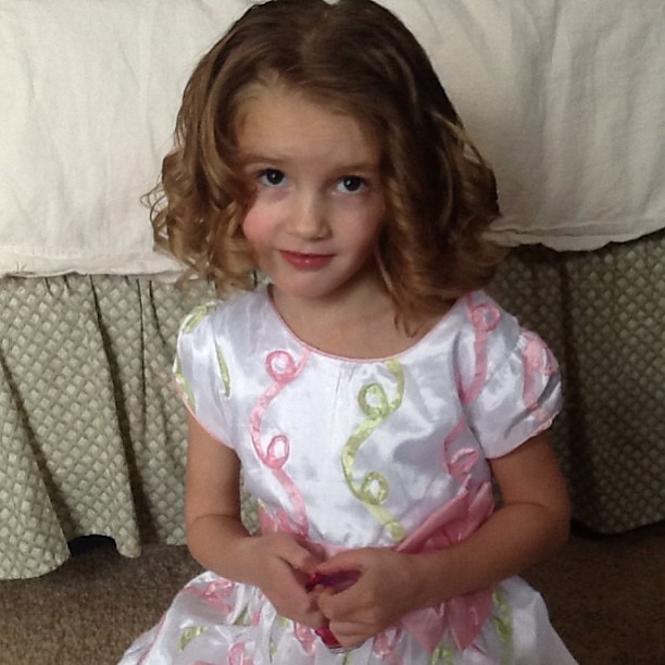 It took me forever to put all the little ringlets in her hair and her brother told her she looked like Heidi (Shirley Temple version).
