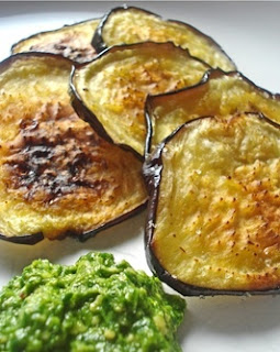 I made baked eggplant chips with a pesto last night and found a new favorite way to eat eggplant. My husband loved it too. You can find the recipe here. The pesto was even home made from spinach cilantro, garlic and olive oil. It was the first time I have ever made pesto, but I doubt the last. It was so good!