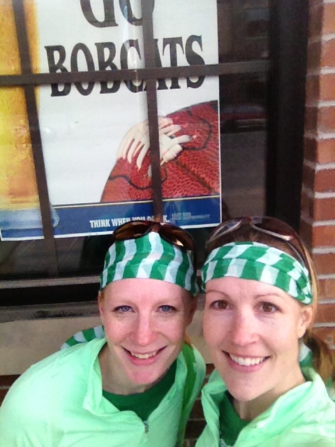 Prerace, waiting for it to be time to load the buses out to the start line, we had to take a picture in front of a Bobcats sign.