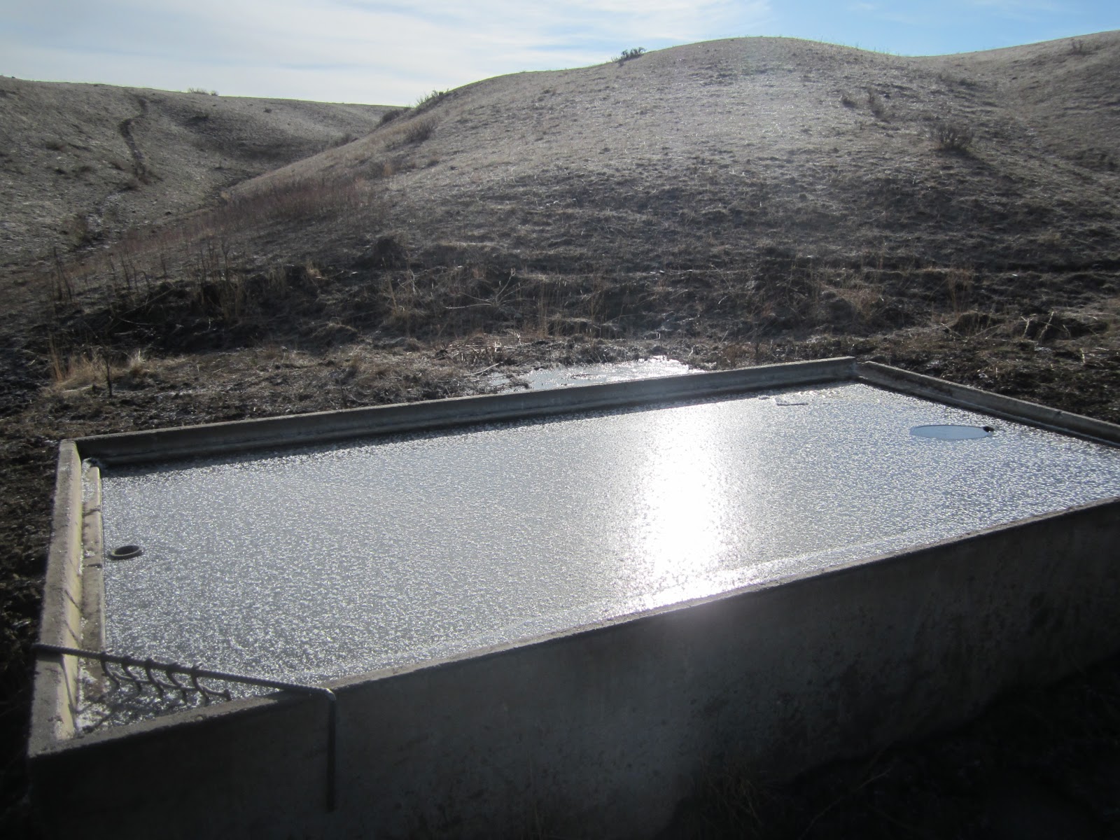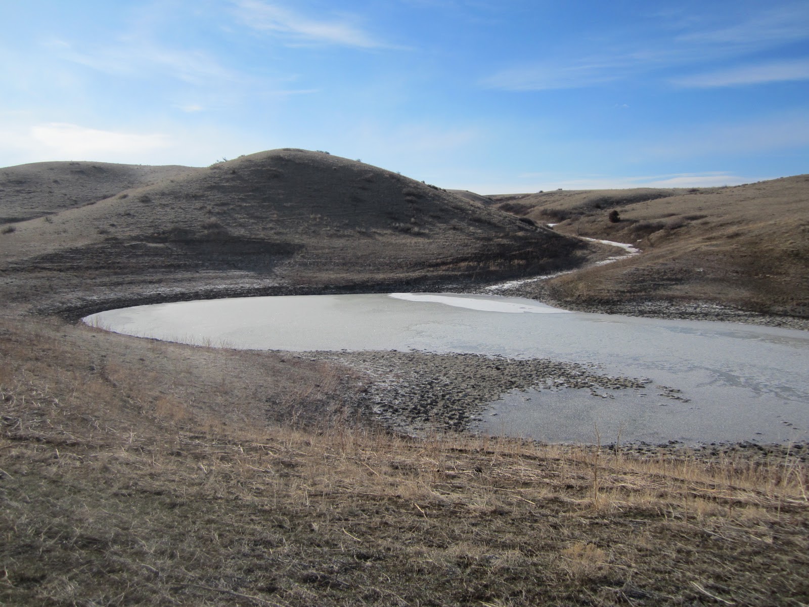 To create watering holes for livestock they used to build little dams in coulees to create water resevoirs. We have quite a few of these on the ranch.