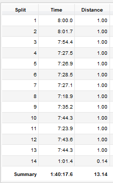 Always a goal in a race. Means I finished strong and didn't start out all crazy.This will be easy since the first half of the race has roughly three uphill miles and the second half has only one and as far as I can tell the rest of the race is downhill