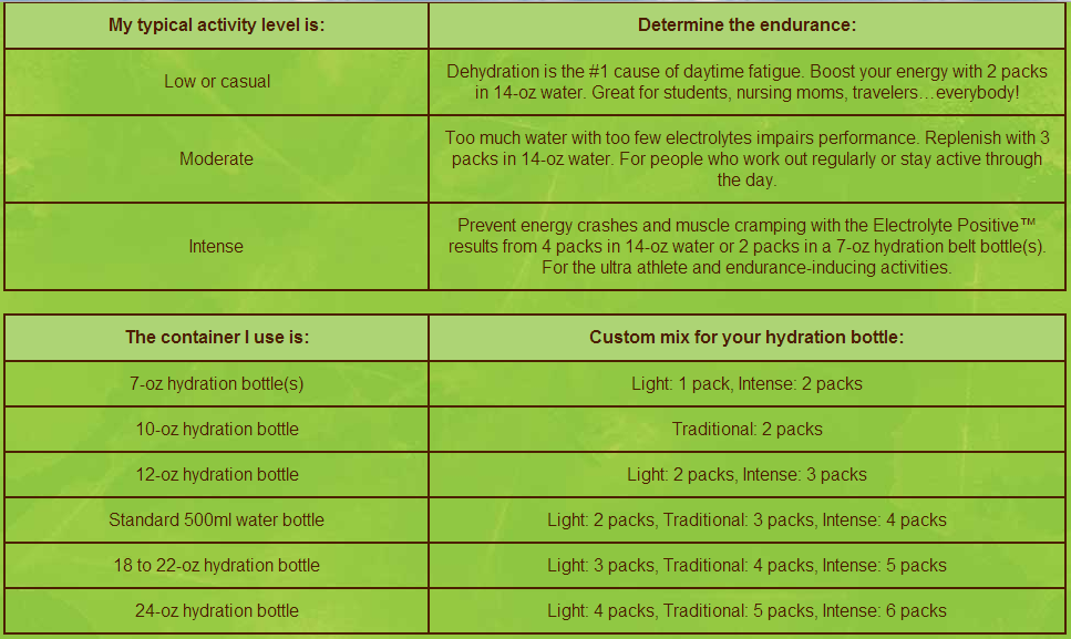 Since not everyone has water bottles that are 14 oz containers they even have a great graphic that helps you figure out how much you want to mix. Here is part of the graph.