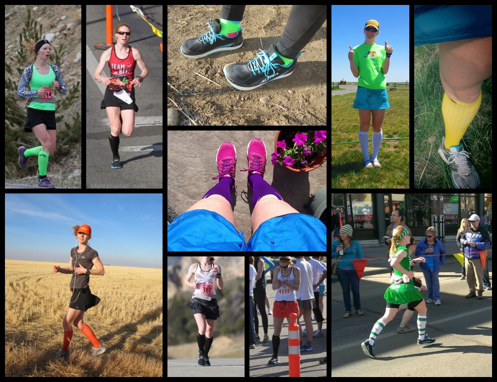 1. I conducted an informal poll on my facebook and Instagram about what I should wear for the half marathon this weekend. There are two skirt and three sock options.